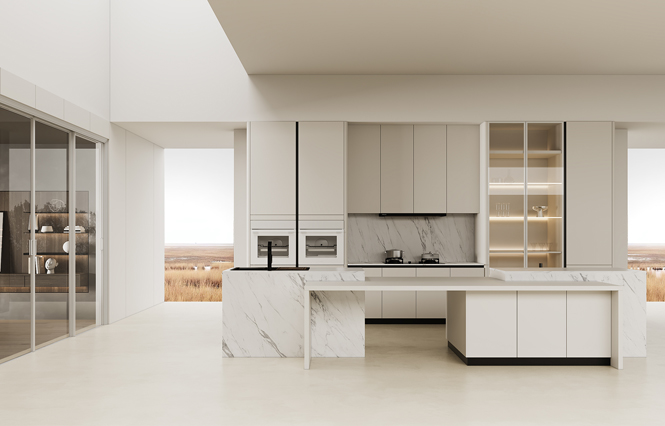 通过PG国际量体裁柜,定制出适合主厨下厨的烹饪区和洗涤区的舒适高度。